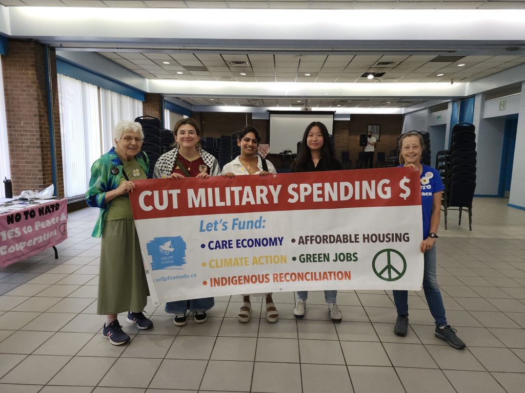 WILPF Canada members join recent events in Ontario September 29, 2025 Events WILPF Canada members joined the Draw the Line rally in Waterloo: WILPF members also participated in “Peace of the Pie: People’s Hearing on Military Spending” in Toronto: